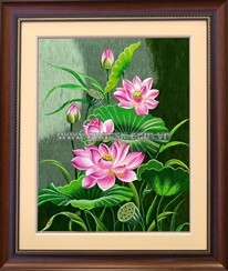 Tranh thêu tay đầm hoa sen hồng