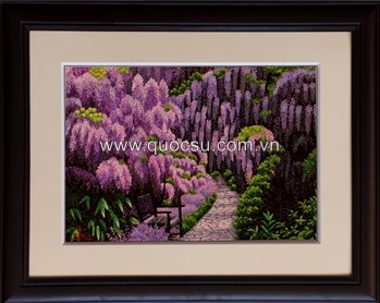 Tranh thêu tay phong cảnh vườn hoa fuji tím