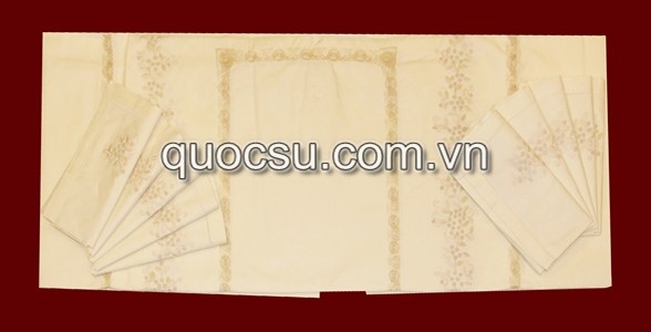 Khăn trải bàn bầu dục thêu hoa Mimoza