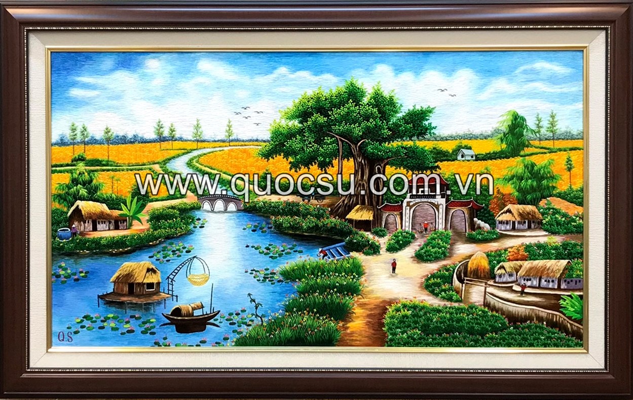 Tranh thêu tay phong cảnh đồng quê