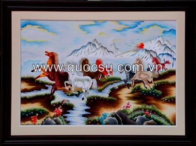 Tranh thêu tay phong cảnh Mã đáo thành công - Bát mã truy phong