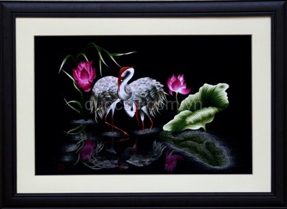 Đôi hạc soi bóng - QS.r-010 | Tranh thêu tay - Theu tay - truyền thống Quốc Sự