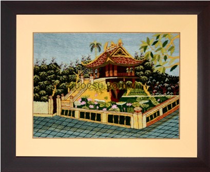 Tranh thêu tay phong cảnh chùa 1 cột