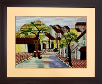 Tranh thêu tay phong cảnh phố cổ Hà Nội