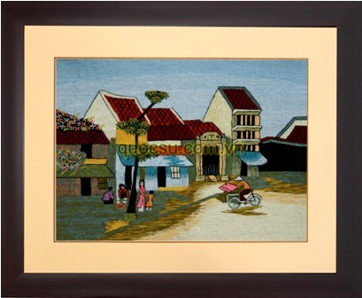 Tranh thêu tay phong cảnh phố cổ Hà Nội