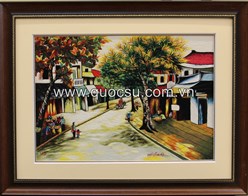 Tranh thêu tay phong cảnh phố cổ Hà Nội