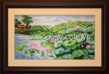 Đầm sen hồng 10 - FL-202b | Tranh thêu tay - Theu tay - truyền thống Quốc Sự