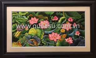Đầm sen hồng 9 - FL-199b | Tranh thêu tay - Theu tay - truyền thống Quốc Sự