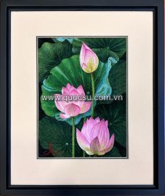 Tranh thêu tay hoa sen hồng