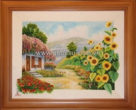 Hoa hướng dương góc - PA-159b | Tranh thêu tay - Theu tay - truyền thống Quốc Sự